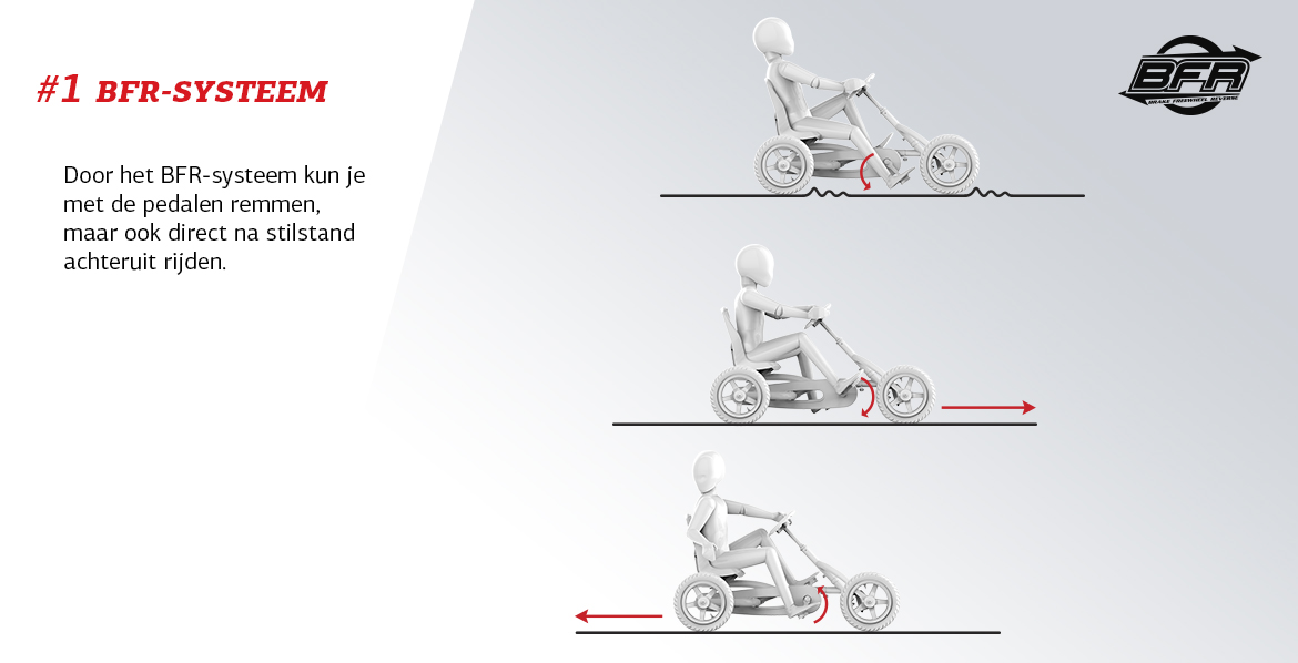 • Door het BFR-systeem kun je met de pedalen remmen, maar ook direct na stilstand achteruit rijden.