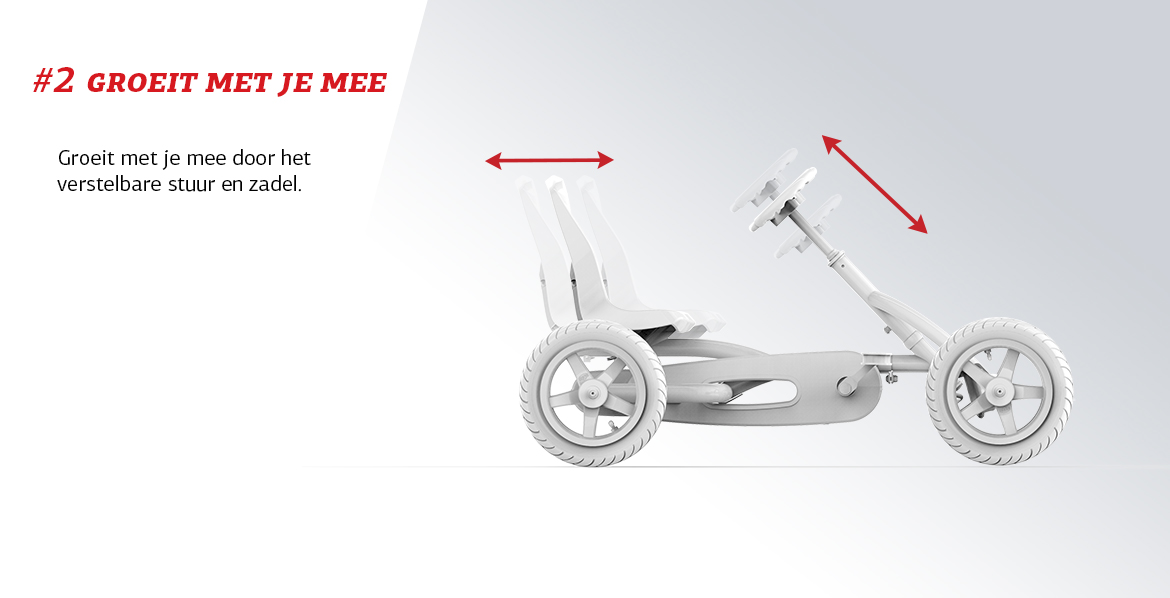 Door het verstelbare stuur en stoeltje past de BERG Buddy bij de lengte van je kind.