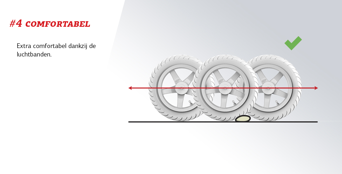 Door de offroad banden kan je met deze skelter elk avontuur aan! Daarnaast rijdt deze skelter comfortabel door de luchtbanden.