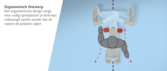 • Dankzij het ergonomische design komen de voetjes van je dreumes niet tegen de pedalen of achterwielen aan