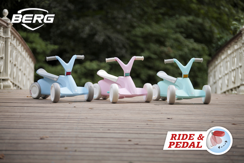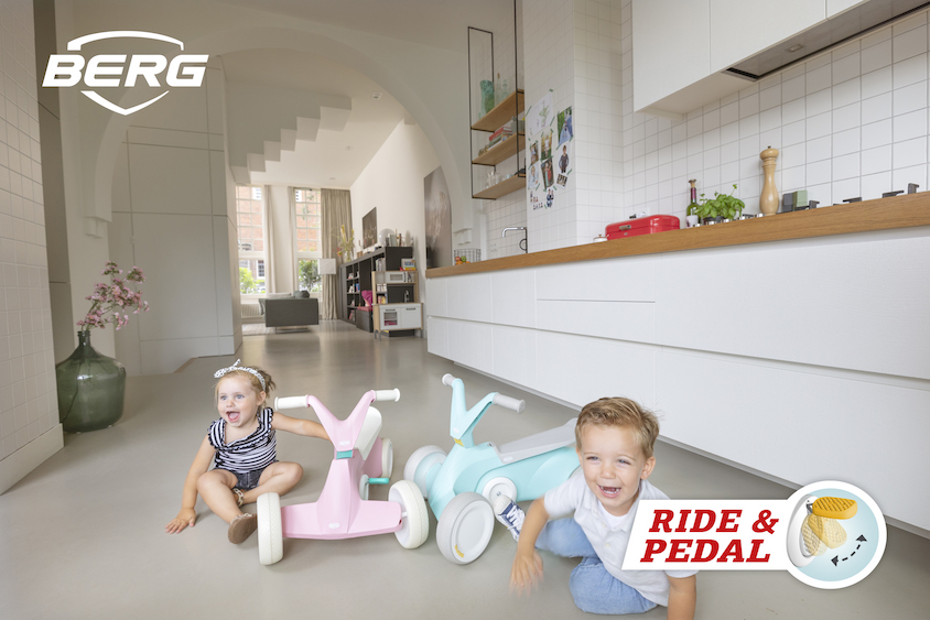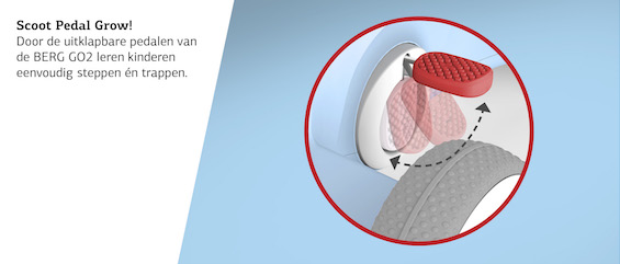 Door de vormgeving kan je kindje de BERG GO² eenvoudig als loopauto gebruiken zonder dat de pedalen of achterwielen in de weg zitten. Klap de trappers uit wanneer je kind toe is aan de volgende fase. Dan kan jouw dreumes heerlijk leren rondrijden op de BERG GO².