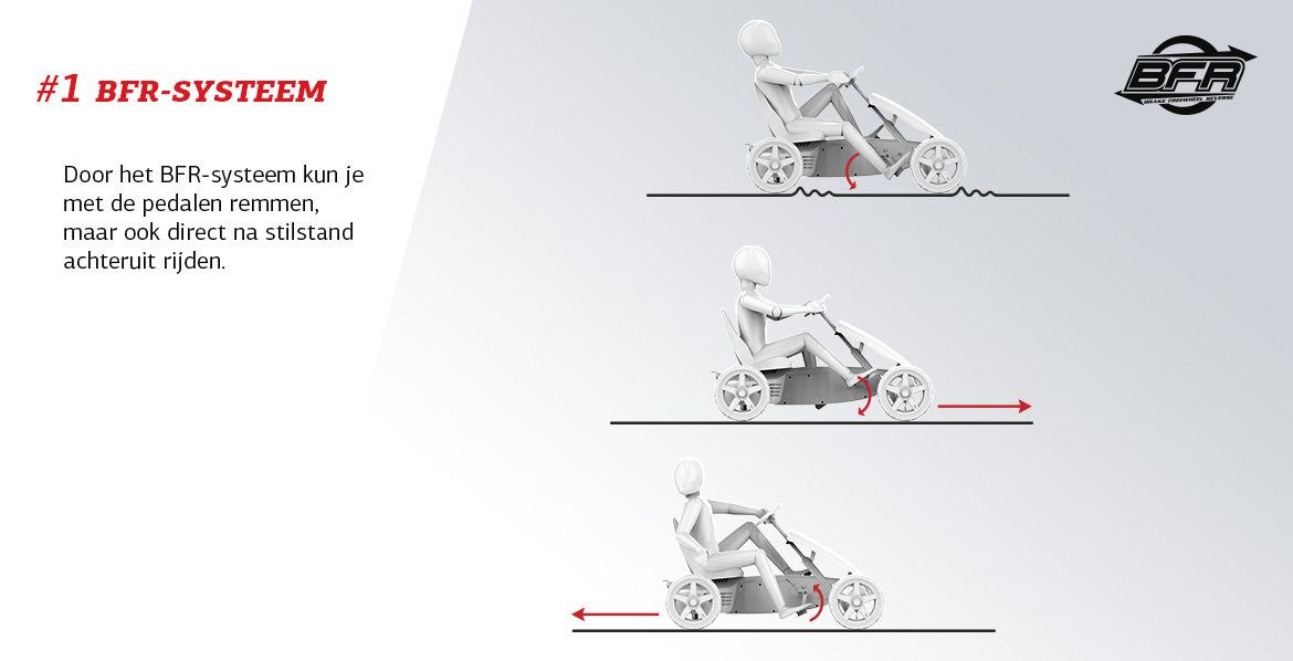 • Door het BFR-systeem kun je met de pedalen remmen, maar ook direct na stilstand achteruit rijden.