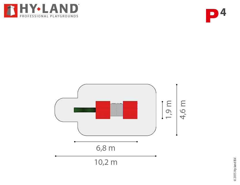 Voor een veilige speelomgeving dient er rondom de speeltoren een schok absoberende ruimte van 2 meter rond het speeltoestel gebruikt te worden. Dit kan gras, boomschors of rubberen tegels zijn. Om de speeltoren extra te verstevigen raden wij aan om 2 sets Hy-Land Grondankers te gebruiken.