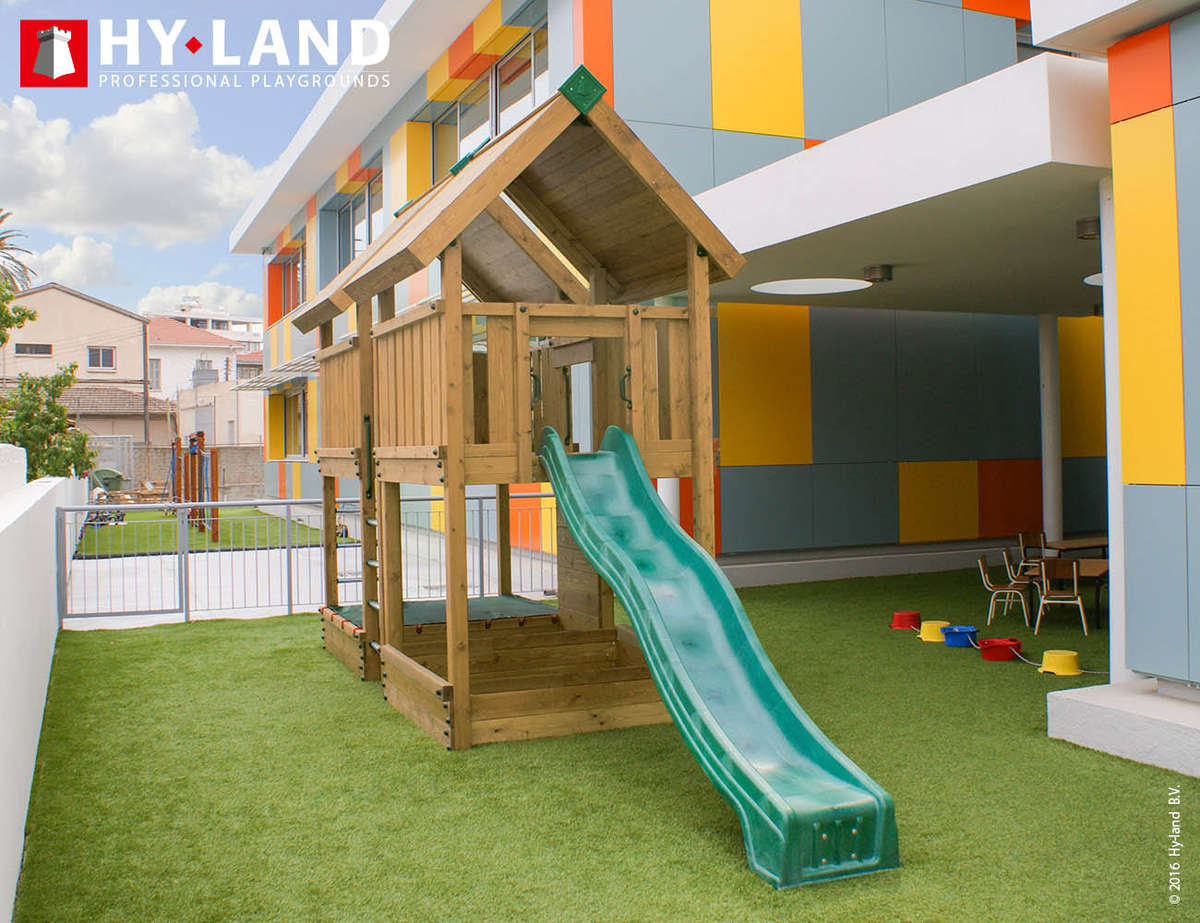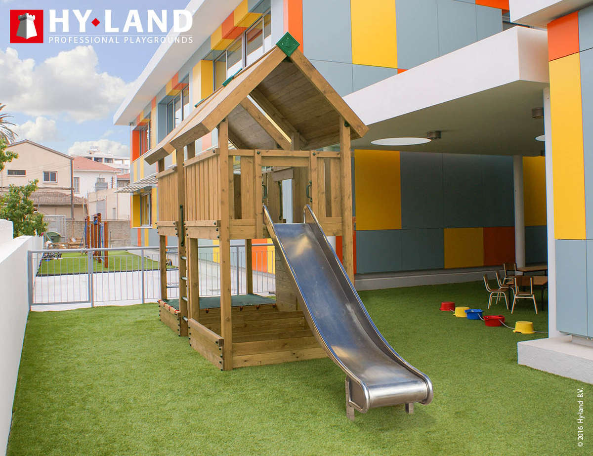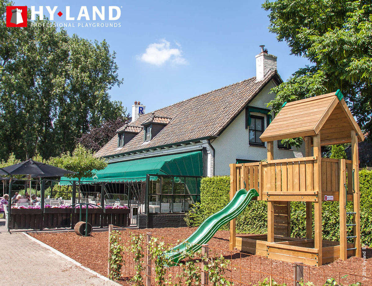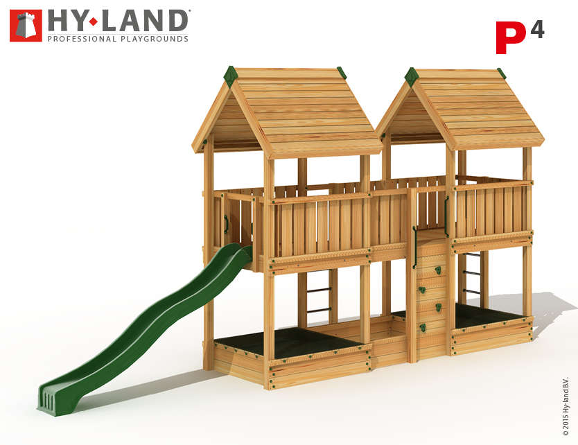 Wat is nu leuker dan dat de kinderen veilig buitenspelen samen met vriendjes en vriendinnetjes in een sociale en creative omgeving. Hy-land heeft hiervoor houten speeltoestellen gemaakt, die precies aan die eisen voldoen. De speeltoren is uitgerust met een glijbaan. Doordat de speeltoren TÜF en EN 1176 gekeurd is, is de speeltoren voor zowel particulier als voor openbare doeleinden te gebruiken.
