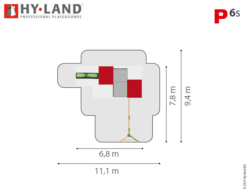 Voor een veilige speelomgeving dient er rondom de speeltoren een schok absoberende ruimte van 2 meter rond het speeltoestel gebruikt te worden. Dit kan gras, boomschors of rubberen tegels zijn. Om de speeltoren extra te verstevigen raden wij aan om 6 sets Hy-Land grondankers te gebruiken.