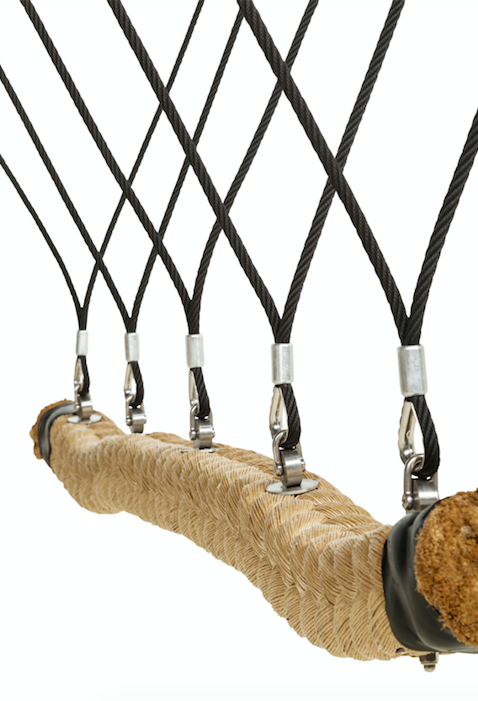 - Stevig PP touw (140x140 mm) en ophangtouwen in gewapend touw (Ø 16mm)