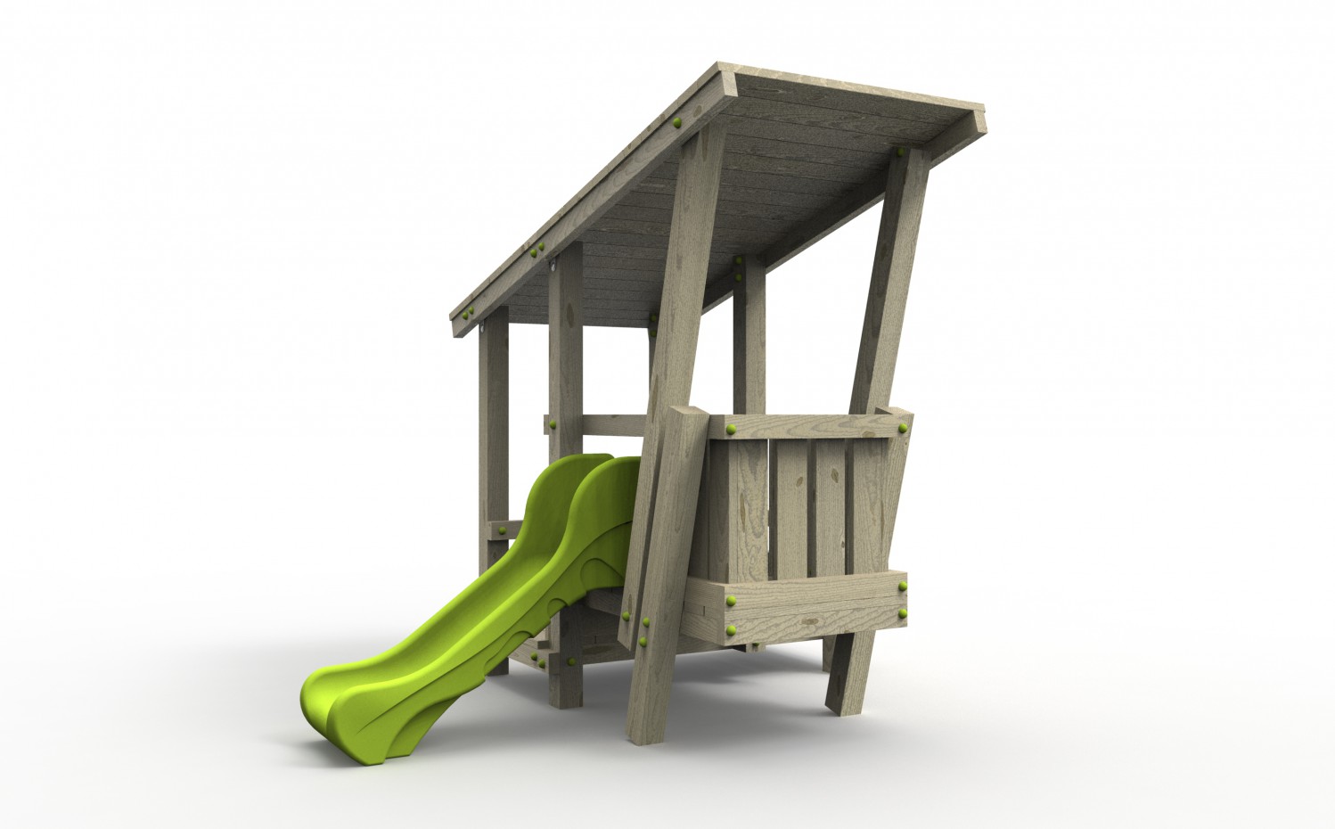 - Gebruikt hout is Vuren geïmpregneerd, met een sterkteklasse van C24. Dit constructiehout is zeer geschikt om onderhoudsvrije speeltoestellen te maken. Het hout wordt op maat gezaagd geleverd met afgeronde hoekjes.