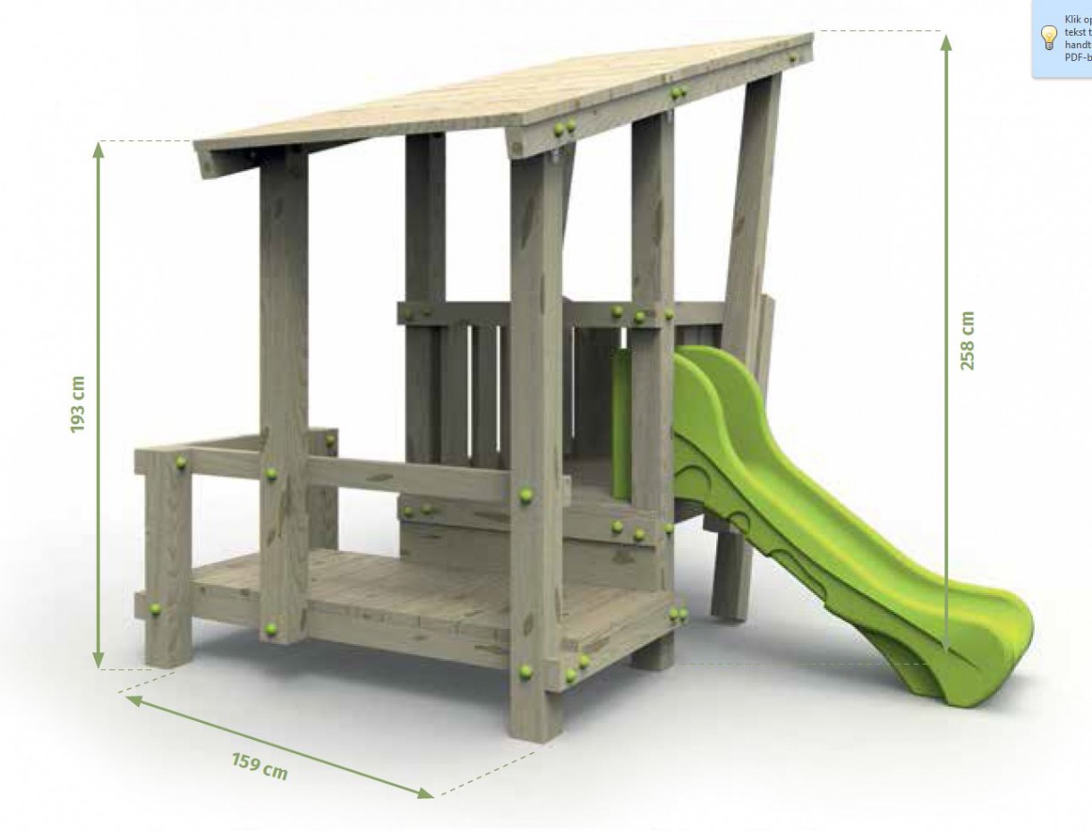 - Prachtig zelf-bouwpakket wat makkelijk op te bouwen is, zonder dat u een specialist of vakman nodig hebt. Ook behoeft dit speeltoestel geen speciale keuring achteraf. Geschikt voor camping, restaurant, kinderdagverblijf, school, openbare speelplaats e.d.