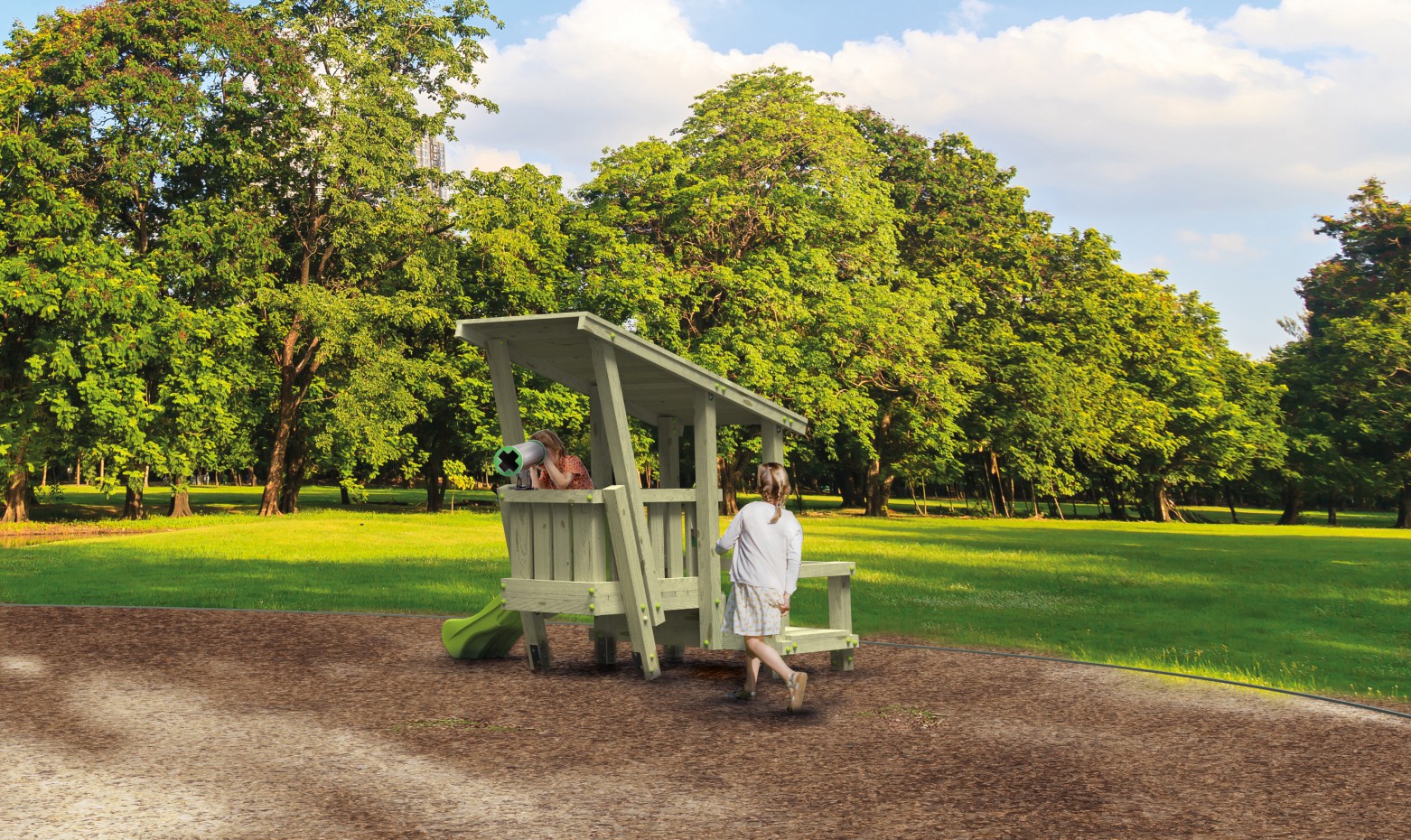 Speelhuis Surf Shack White Rhino is een vrolijk speelhuis met een doordacht design. Doordat het laagste opstapje al begint op 30 cm vanaf de grond, wordt het toestel heel toegankelijk voor de kleinere kinderen. Het 2e platform en glijbaantje zorgen hier voor extra uitdaging en fantasie! Deze robuuste Q-line versie staat garant voor jaren lang speelplezier en weinig onderhoud.