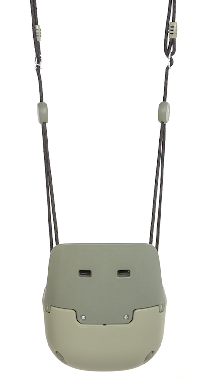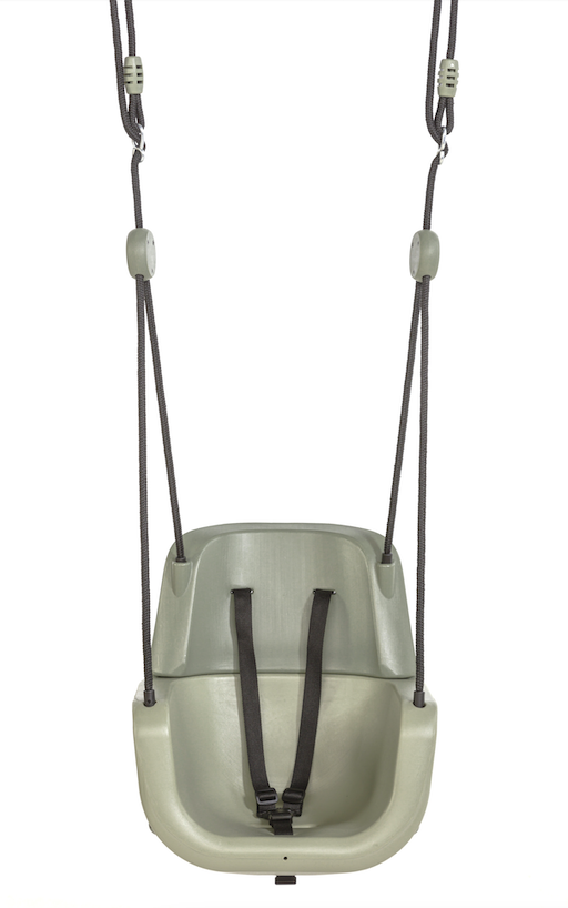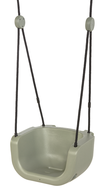 Gemaakt van stevig geblazen HDPE kunststof, is dit zitje niet alleen lichtgewicht, maar ook extreem duurzaam en weerbestendig. De zwart gevlochten touwen van 10 mm dik zijn in hoogte verstelbaar tot 250 cm, waardoor het babyzitje eenvoudig aan diverse schommelconstructies te bevestigen is.
