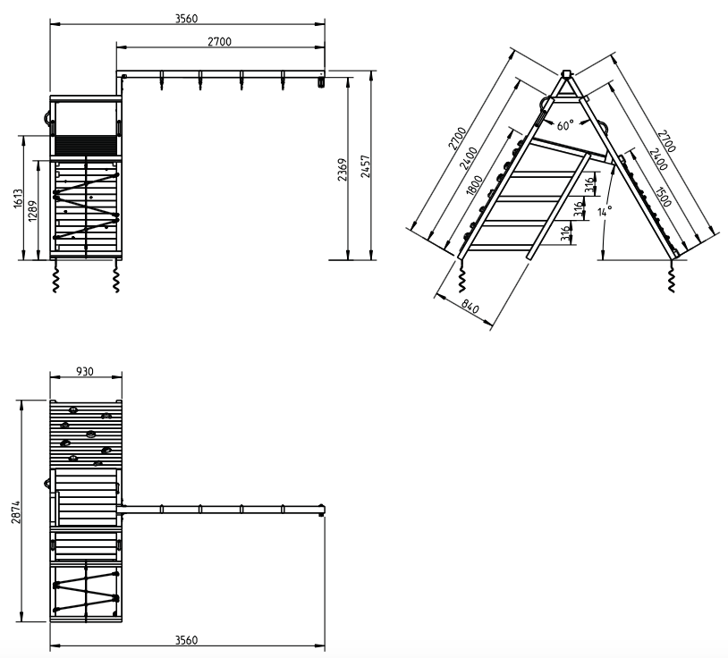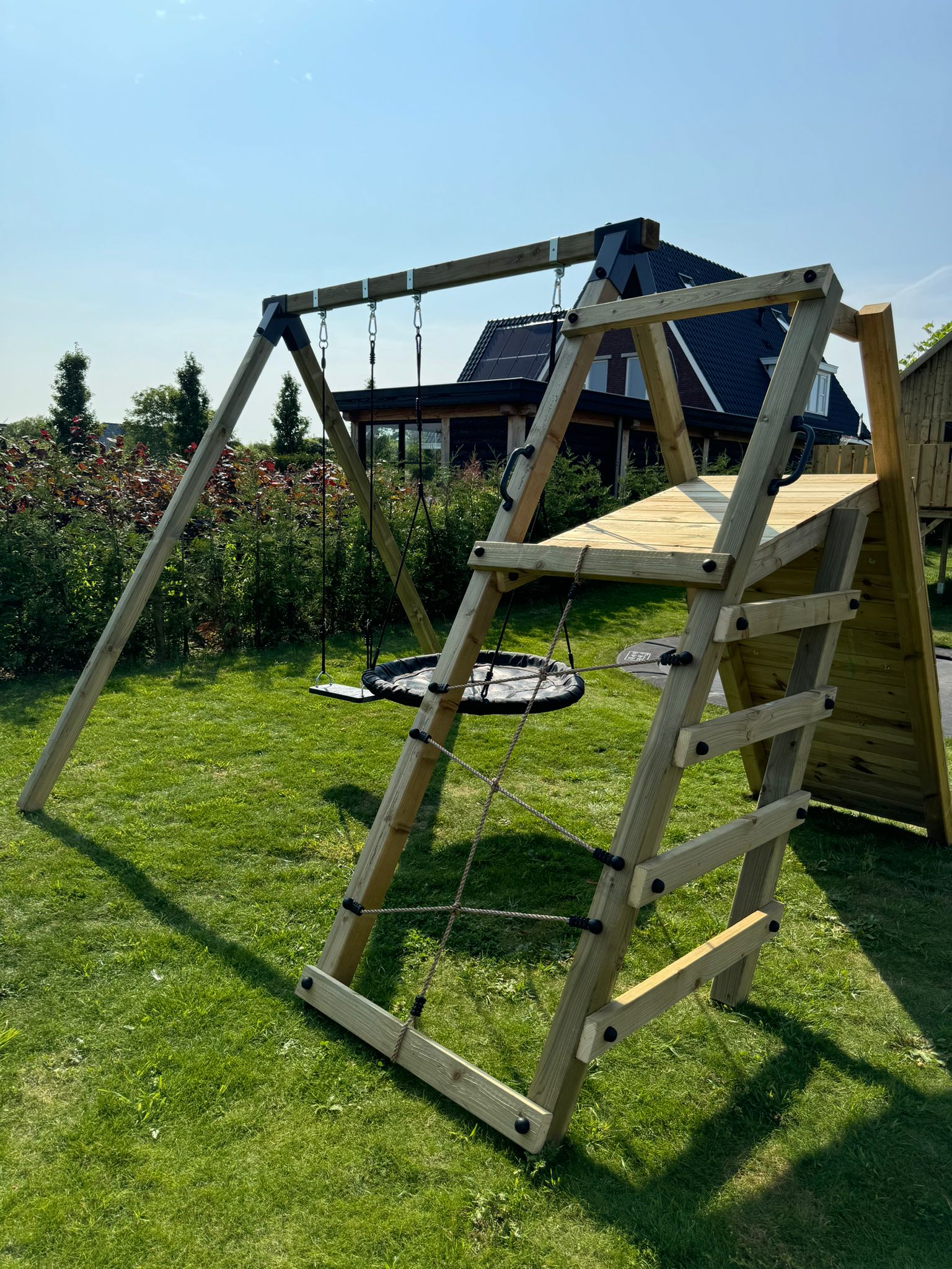Productinfo Schommel 'losstaand' + klimwand | @Challenger | Blue Rabbit op maat gezaagd
