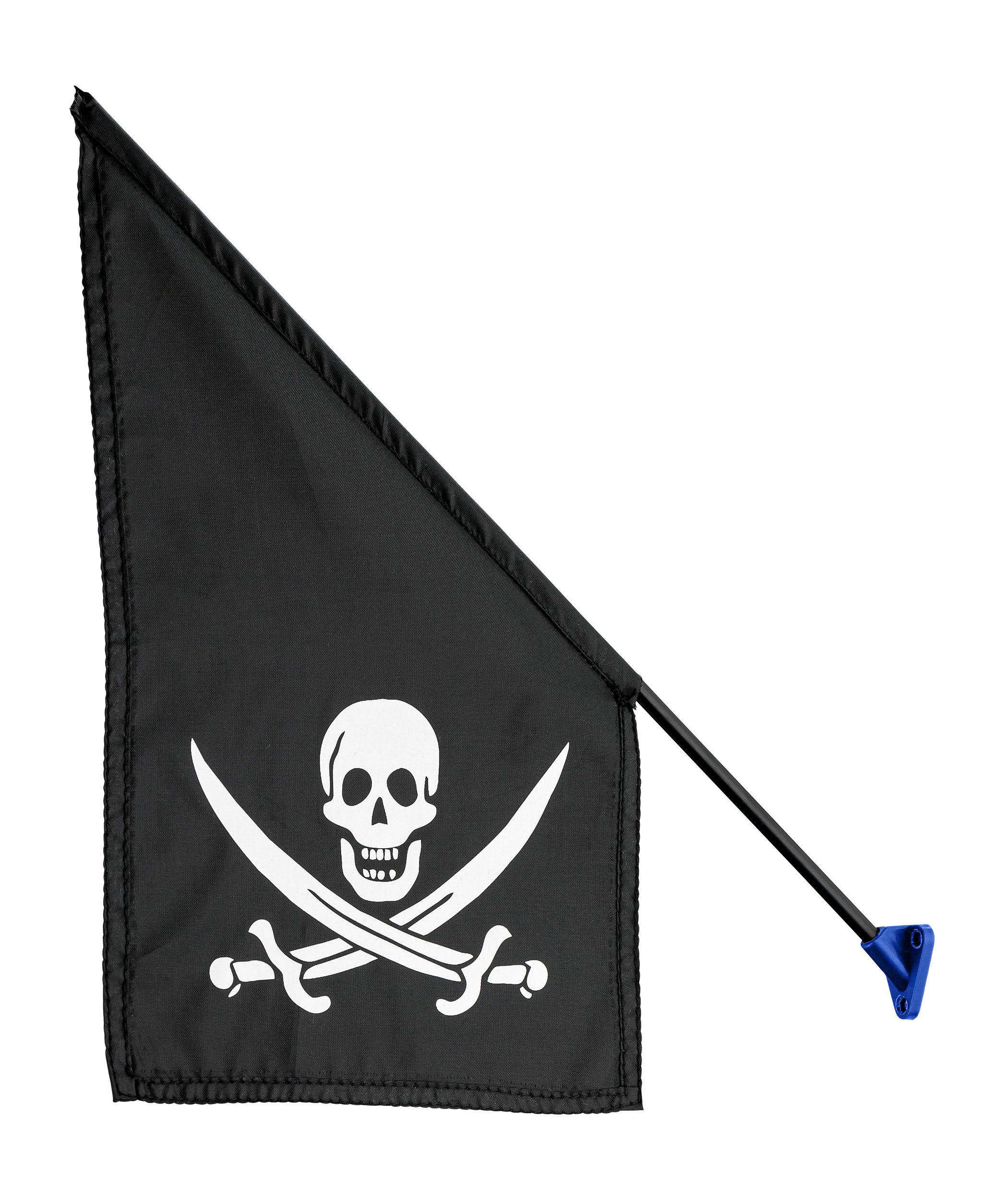 De katoenen vlag met piratenlogo wordt geleverd met vlaggenhouder en bevestigingsmateriaal (schroefjes).