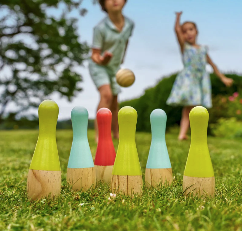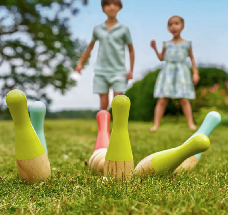 Ervaar de charme van traditioneel buitenspelen met de TP Houten Outdoor Kegels – waar duurzaamheid en plezier samenkomen!