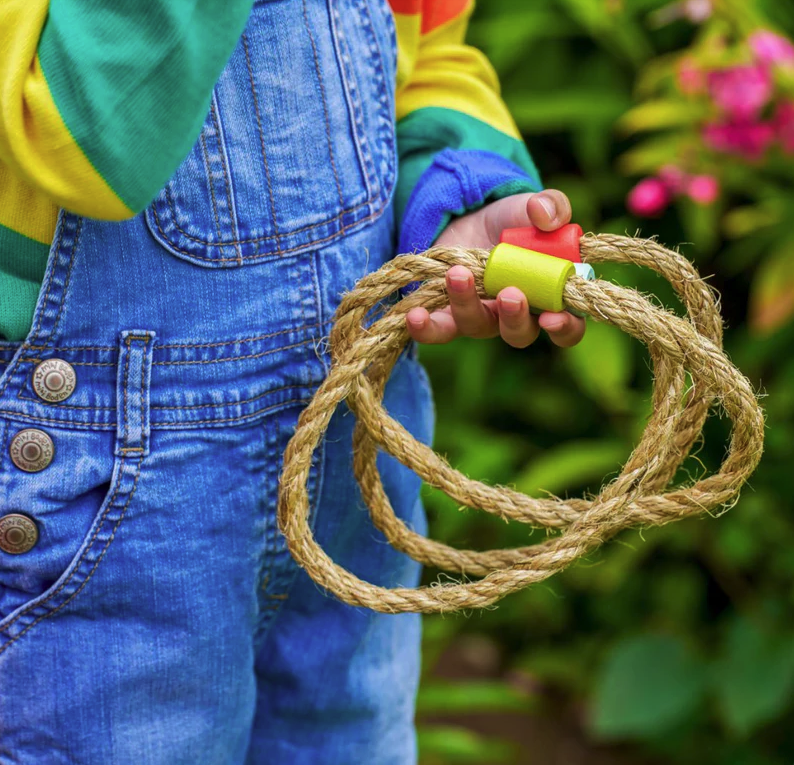 - Includes 5 coloured rope rings