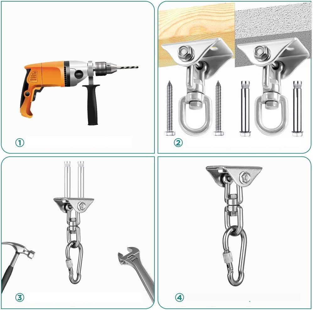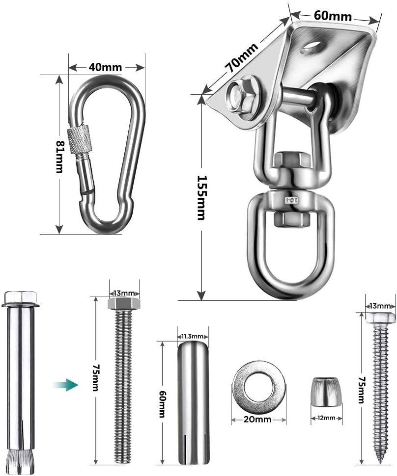 Deze haak is ideaal voor het ophangen van een nestschommel, schommelstoel, hangmat, zonnedoek en bokszak