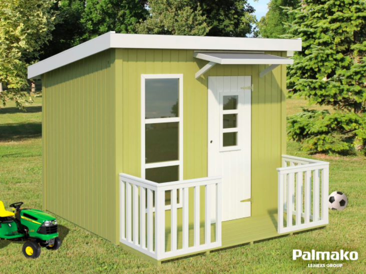 Dit huisje wordt in voorgemonteerde wanden geleverd.