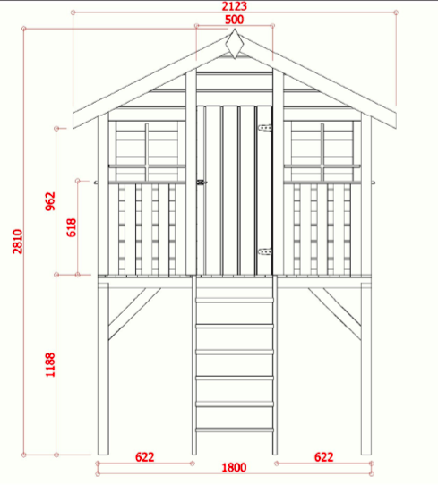 Afmetingen: ( LxBxH) 190 x 180 x 281 cm (excl. uitval trap/glijbaan en dakoverstek)