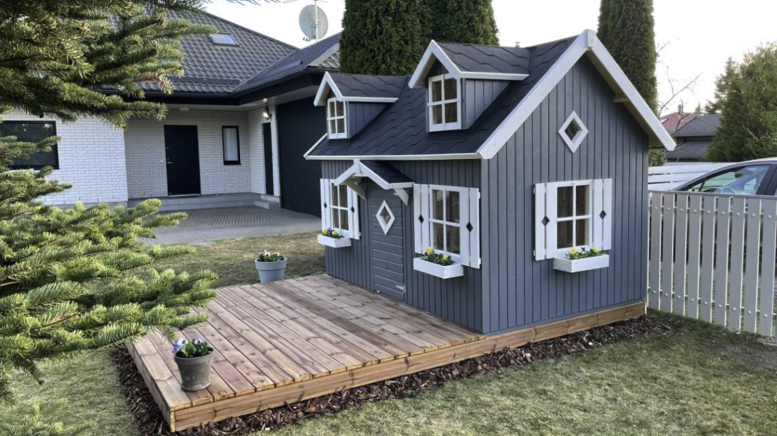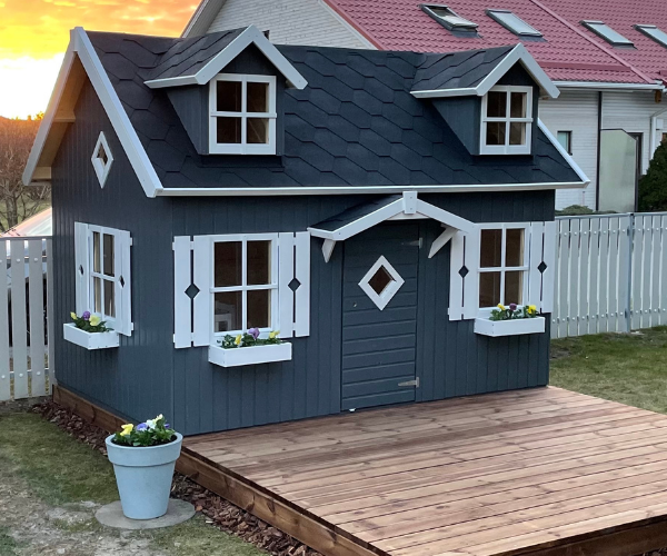 Ook zitten er plantenbakjes bij wat het speelhuisje leuk aankleed, en heeft het speelhuisje een trap en verdieping.