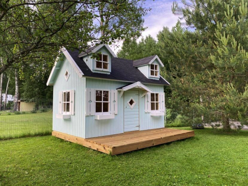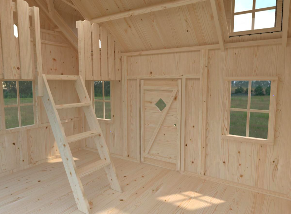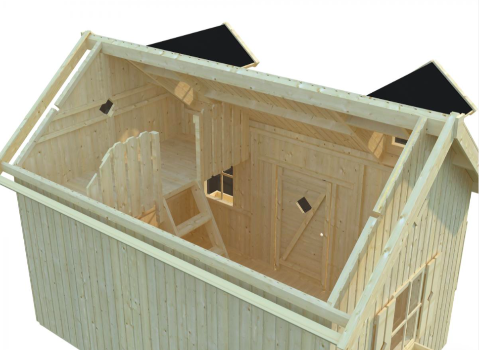 Dit huisje wordt in voorgemonteerde wanden geleverd.