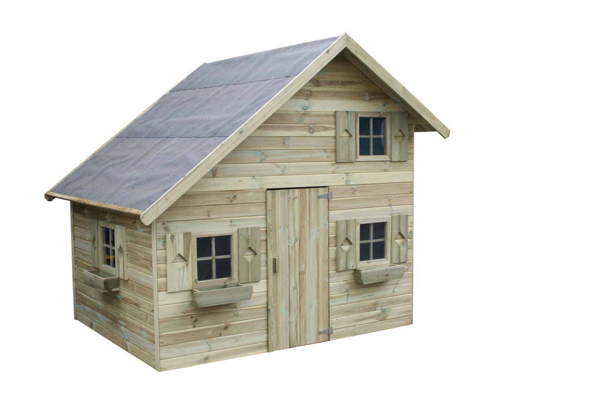 note: Het speelhuis wordt geleverd inclusief gratis dakleer. Wij kunnen hierop geen garantie verlenen omdat dit eigenlijk een tijdelijke dakbedekking is van mindere kwaliteit.