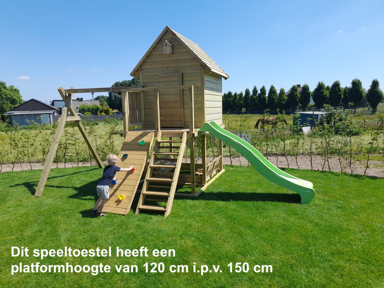 Foto 8 is de basis van de Multi-Fun | Koolmees, hier hoort nog een glijbaan van 3 mtr. bij. Alle overige accessoires die u op de andere foto's ziet zijn apart bij te bestellen.