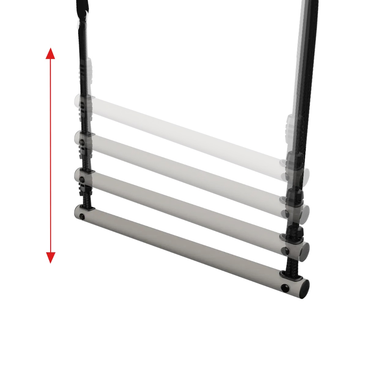 Verstelbaar & eenvoudig te monteren: hoogte van de trapeze verstelbaar; snel te bevestigen en te demonteren met karabijnhaken.