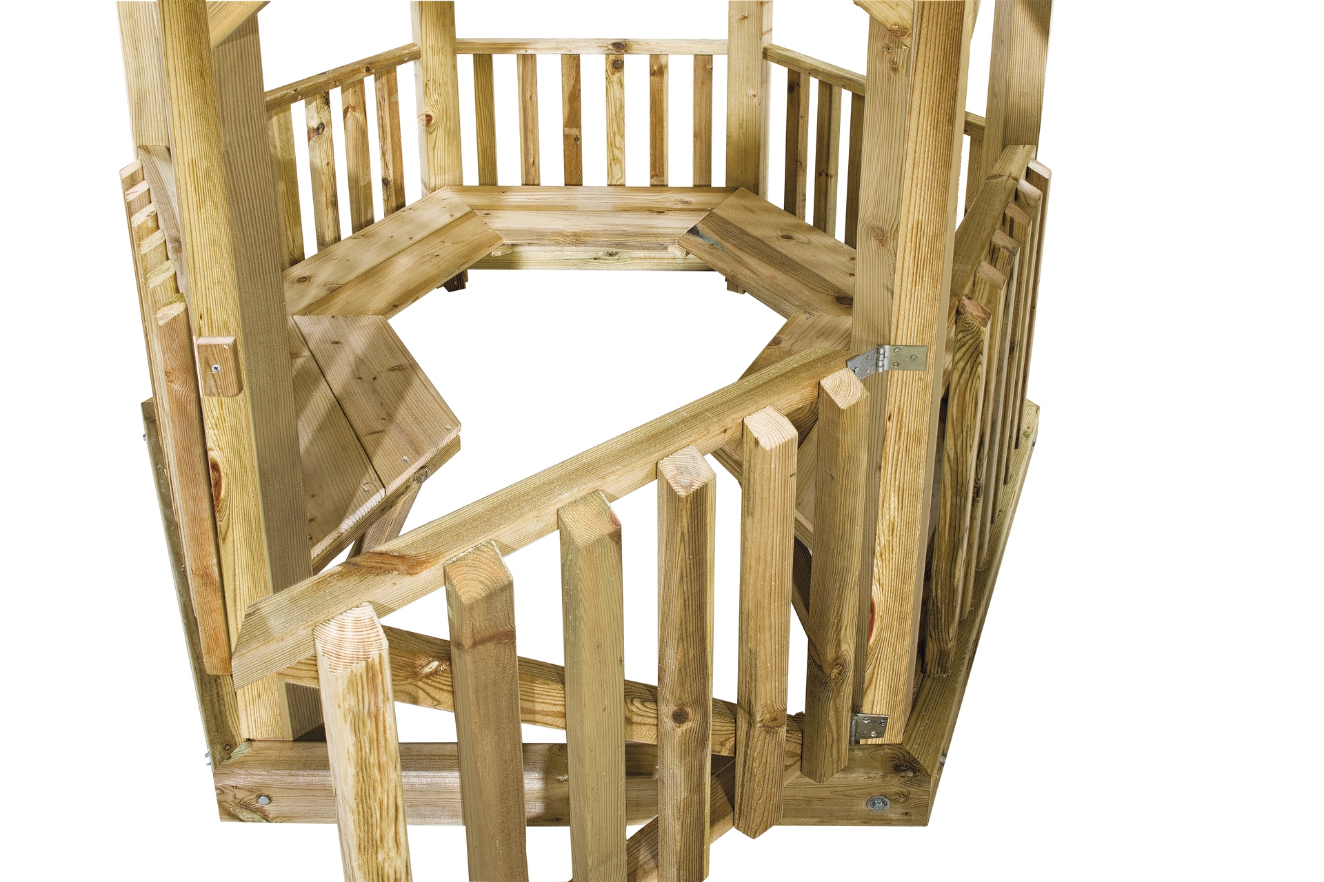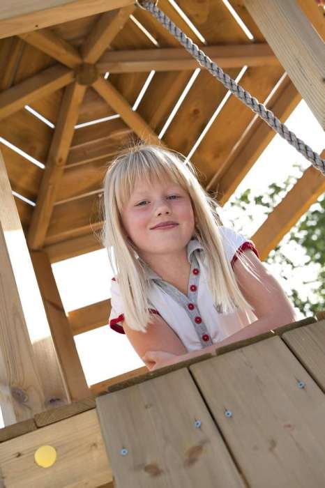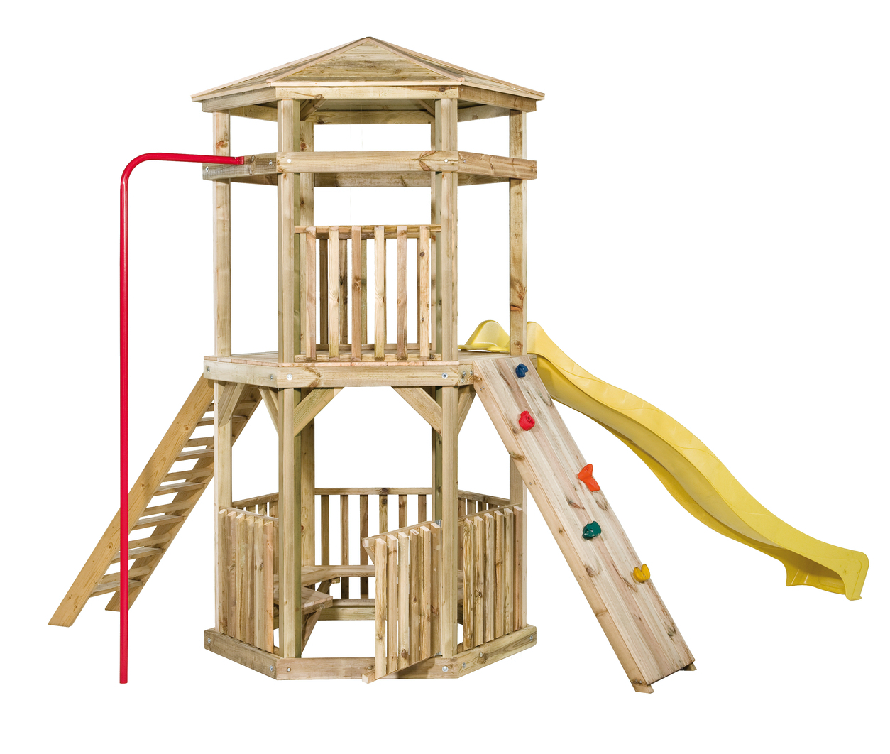 Inculsief: Glijbaan, klimwand met klimstenen, brandweerpaal, veiligheidstrap, grondankers, zeskantig zitgedeelten, rekjes onder, en klimtouw.
