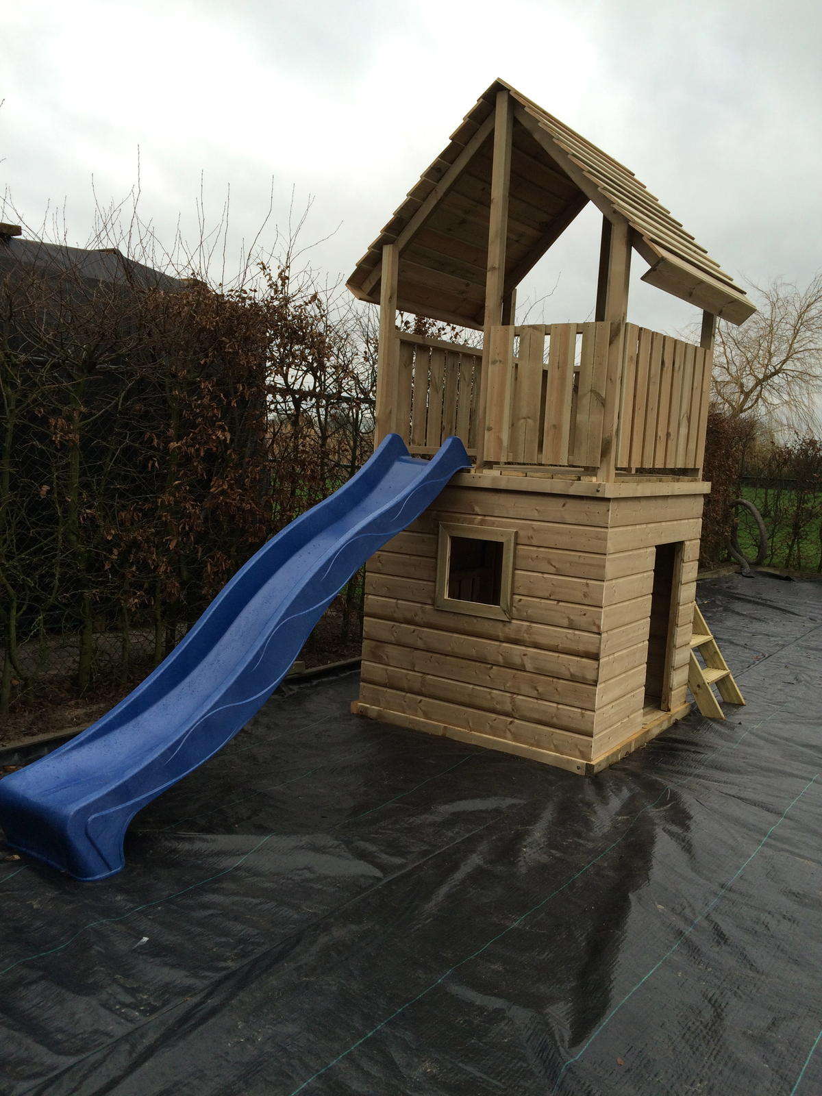 Om zelf een huisje te creëren onder speeltoestel Multi-Fun