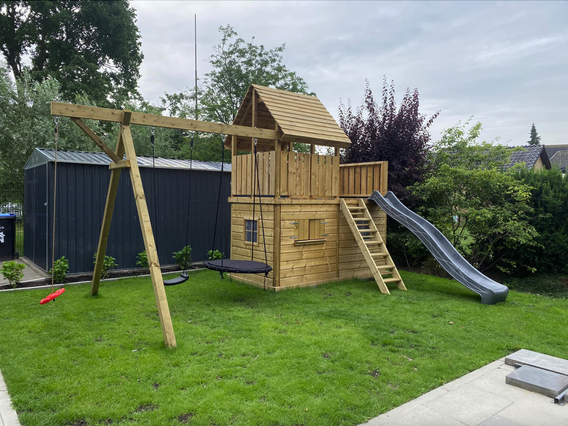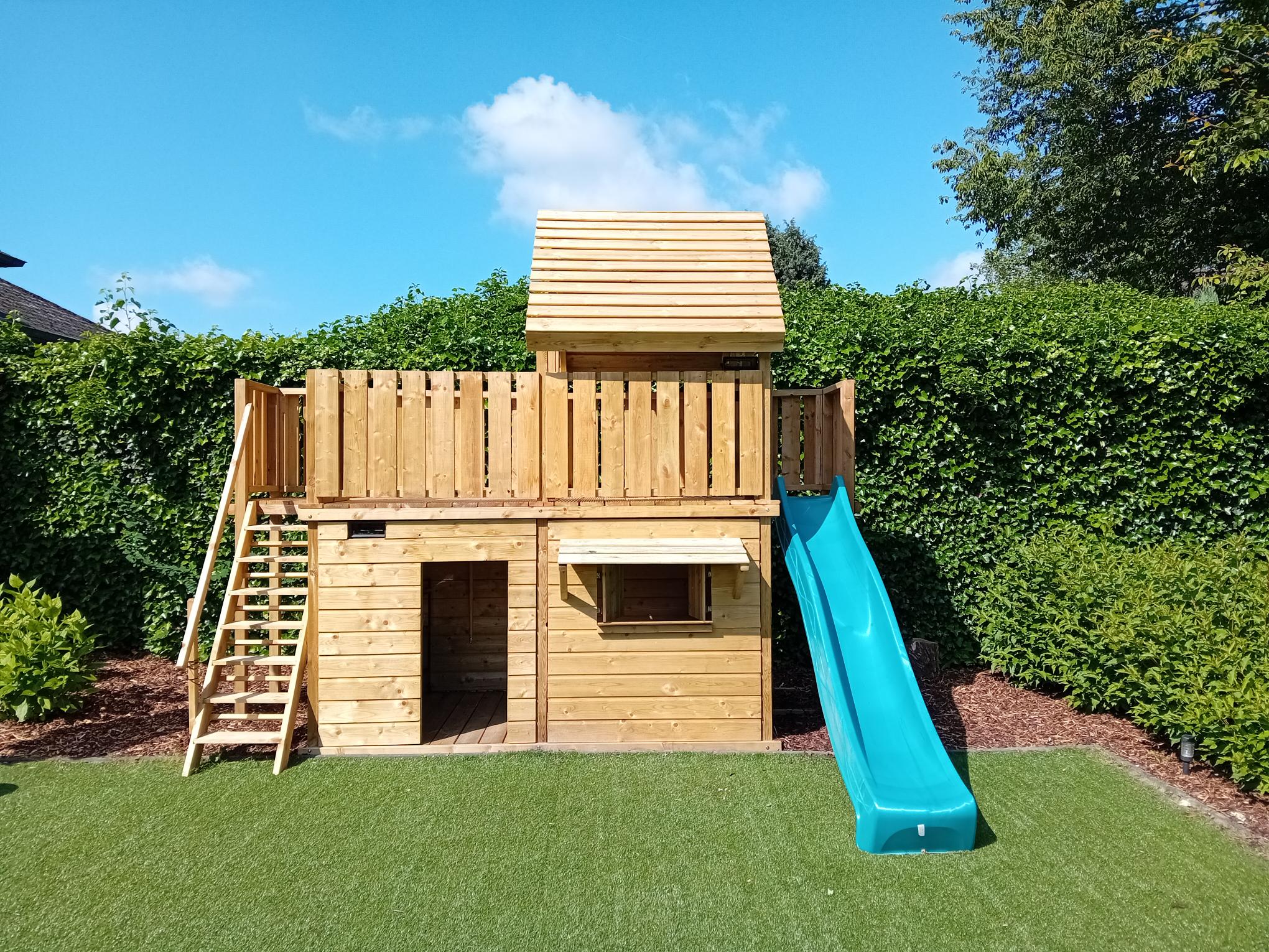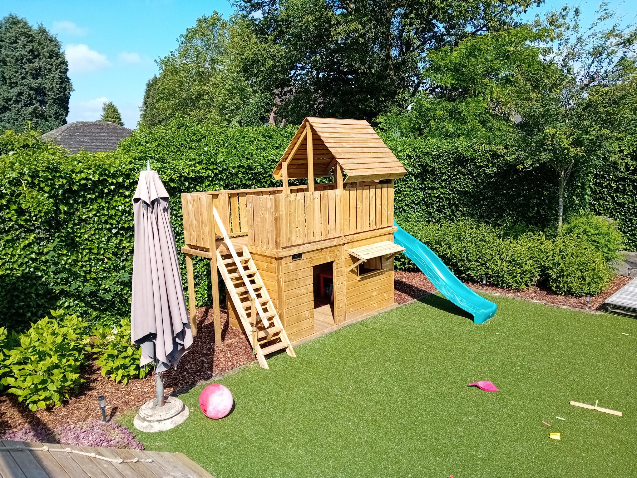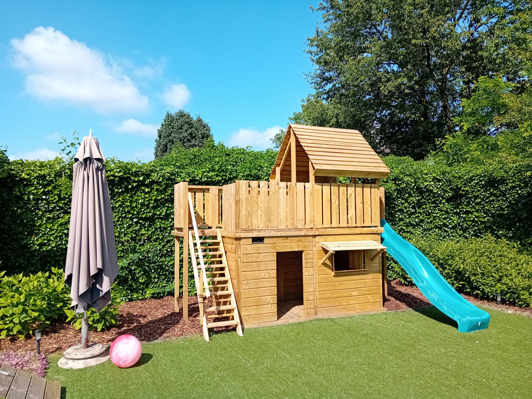 Afmetingen: 351 x 150 cm (zonder uitval van de glijbaan en trap)