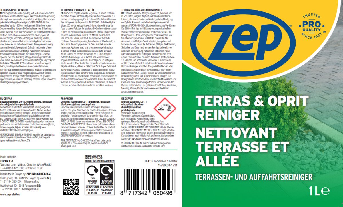 Productinfo ZEP GROENE AANSLAG REINIGER 1 L