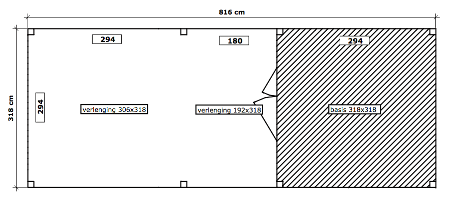 - 1 verlenging, afmetingen 3.06 x 3,18 m