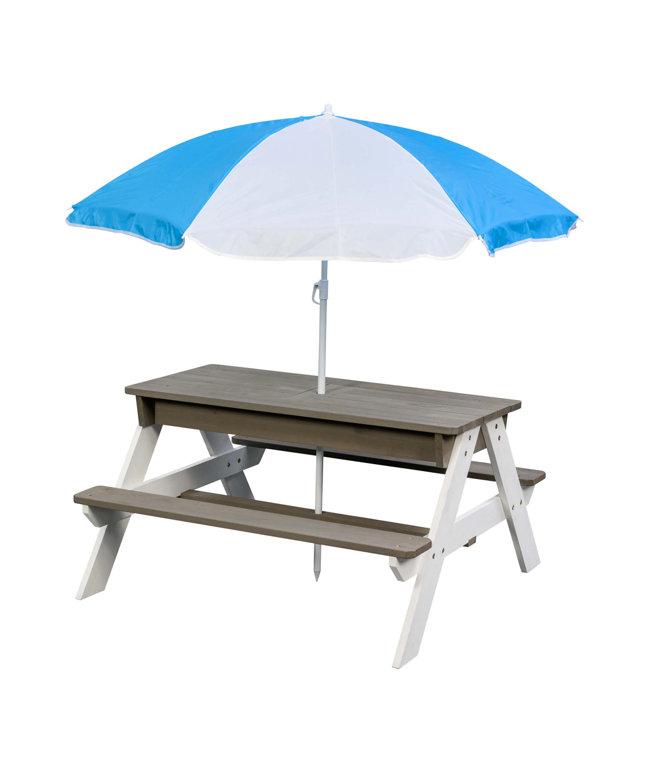 - De Waterfun picknicktafel is de perfecte keuze voor ouders die hun kinderen actief en creatief buiten willen laten spelen. Door de combinatie van water- en zandspel raakt je kind niet snel uitgekeken. De meegeleverde parasol biedt extra comfort op zonnige dagen, terwijl het compacte ontwerp ervoor zorgt dat de tafel in vrijwel elke tuin past. Een veelzijdige en speelse toevoeging die garant staat voor urenlang plezier.