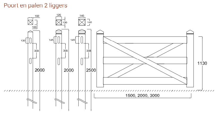 Vierkante paal 12 x 12 x 200 cm 2 gaten