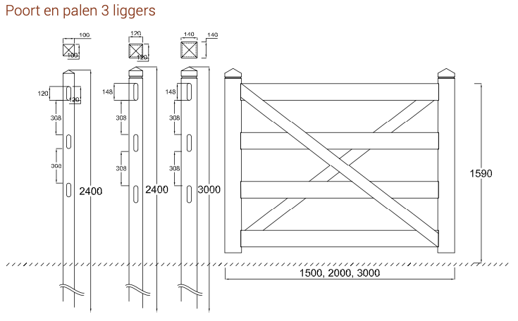 Vierkante paal 12 x 12 x 240 cm 3 gaten
